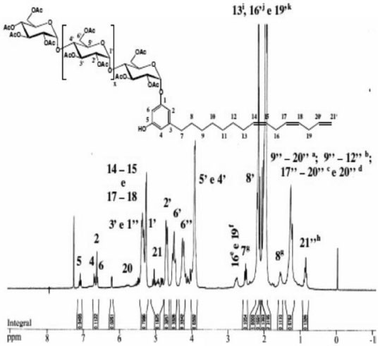 ![]() Figura 2. Espectro RMN 1H do Cardil oligoglicosídeo em clorofórmio deuterado
