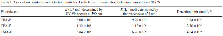 SUPPLEMENTARY MATERIAL UV-Vis spectra and fluorescence spectra of 3 in CH3CN upon the addition of TEA-F and TMA-F are available. Supplementary material associated with this article can be found, in the online version, at http://www.quimicanova.sbq.org.br/.
