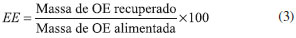 CONCLUSAO Os resultados obtidos neste trabalho indicaram que a eficiência de encapsulaçao diminue cerca de 28% com o aumento da razao OE:β-CD de 1:10 para 2:10. Observou-se que a adiçao de adjuvantes (tensoativo e polímero) formando os complexos ternários e quaternários aumentou em até 10% o teor de óleo encapsulado. A adiçao desses adjuvantes também modificaram a morfologia das partículas, deixando-as mais arredondadas quando comparada com os complexos binários, que mantiveram a estrutura original da β-ciclodextrina, porém com tamanho reduzido, devido ao uso do processador ultrassônico. Os complexos ternários contendo polímero apresentaram maior recuperaçao de secagem atingindo o valor de 87% na amostra 1:10, elevado para secadores em escala laboratorial. Os resultados apresentados neste trabalho permitem concluir que os complexos ternários (polímero ou tensoativo) apresentaram maior vantagem em relaçao aos parâmetros avaliados, como maior retençao de OE e maior eficiência de encapsulaçao.