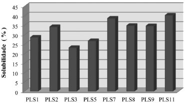 ![]() Figura 4. Solubilidade percentual dos complexos de inclusao