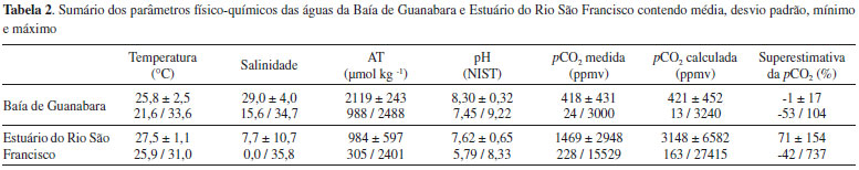 | Comparações entre medições em tempo real da pCO2 aquática com estimativas indiretas em dois estuários tropicais contrastantes: o estuário eutrofizado da Baía de Guanabara (RJ) e o estuário oligotrófico do Rio São Francisco (AL) Comparisons between real-time pCO2 measurements with indirect estimates in two contrasting brazilian estuaries: the eutrophic Guanabara Bay (RJ) and the oligotrophic São Francisco River Estuary (AL) |