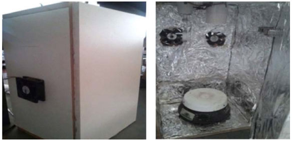 Figura 1. Câmara de fotoreação equipada com uma lâmpada de vapor de mercúrio 125 Watts, um agitador magnético e coolers para resfriamento