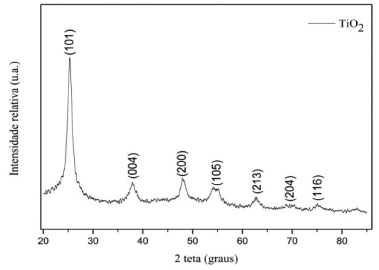 RESULTADOS E DISCUSSÃO Caracterização dos catalisadores Difração de raios-X A Figura 2 apresenta o difratograma obtido para a amostra de catalisador de TiO2 preparada pelo método Pechini.