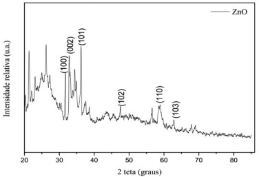 ![]() Figura 3. Difratograma do catalisador de ZnO preparado pelo método Pechini