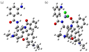 ![]() Figure 11. Energy-minimized structures of (a) RBMAB and (b) RBMAB-Fe3+