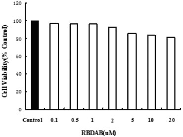 To evaluate the cytotoxicity of RBMAB, the cell viability was determined using a MTT assay in L-02 cells with RBMAB concentrations of 0-20 µmol L-1. When RBMAB was incubated with L-02 cells for 48 h, it showed no toxicity to the cells (Figure 14). These results suggest that RBMAB may be suitable to be used as a potential probe to detect Fe3+ in biological samples.