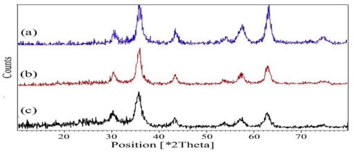 ![]() Figure 3. XRD patterns of (a) Fe3O4, (b) Fe3O4@SiO2 and (c) Fe3O4@SiO2-OSO3H MNPS