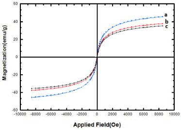 ![]() Figure 5. VSM magnetization curves of the (a) Fe3O4, (b) Fe3O4@SiO2 and (c) Fe3O4@SiO2-OSO3H MNPs