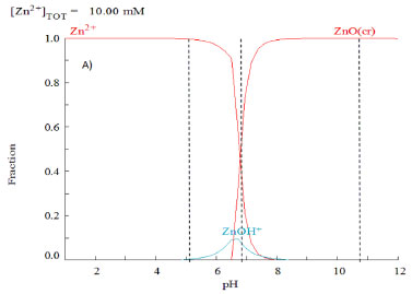 Stability of ZnO for photocatalytic experiments The selection of pH for photocatalytic test was based on ZnO predominance diagrams (see Figure 8), calculated with Hydra Medusa software. In a similar experimental conditions and according to literature. It can be observed that for pH > 8 the predominant species is ZnO.30