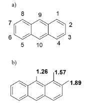 ![]() Figure 13. a) Numbering and b) Nu (Dewar) values for substitution in different position of anthracene compound