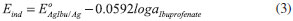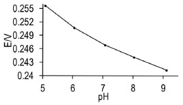 ![]() Figure 4. Potential variation obtained with the second type electrode Ag / AgIbu as a function of pH