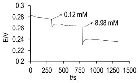 ![]() Figure 5. Change in the response of the electrode as a function of time after adding several ibuprofenate ion concentrations using the Ag / AgIbu second type electrode as working electrode