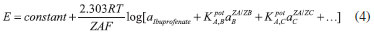 The second type electrode responds to the following equilibrium: ![]() where ![]() In the equation, it can be perceived why the electrodes of the second type are capable of sensing the anions; however, it is necessary to remember that the Nikolsky-Eisenman equation24 is the most correct one when considering the interference effect. where: ![]()