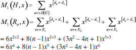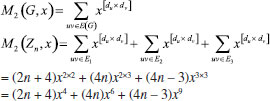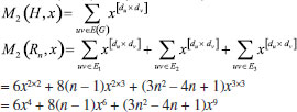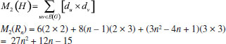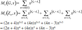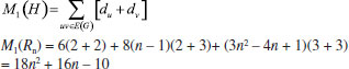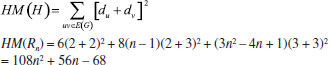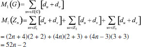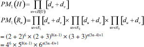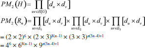In the next theorem we compute first Zagreb index M1(H), second Zagreb index M2(H), hyper-Zagreb index HM(H), first multiple Zagreb index PM1(H), second multiple Zagreb index PM2(H), Zagreb polynomials M1(H,x), M2(H,x) for Rn in the following theorem. Theorem: Consider the rhombic benzenoid system Rn , then its molecular descriptors are ![]() Proof. Using edge partition given in Table 2, we compute different variants of Zagreb indices defined in equations 1-5 as ![]() ![]() ![]() ![]() ![]() Theorem: First Zagreb polynomial M1(Rn,x) and second Zagreb polynomial M2(Rn,x) of rhombic benzenoid system Rn are ![]() Proof. Now we proceed to compute the first Zagreb polynomial and second Zagreb polynomial of Rn defined in equations 6,7 and are analyzed using Table 2. ![]() ![]()
