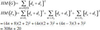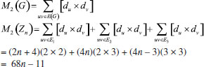 RESULTS AND DISCUSSION Zigzag benzenoid system Consider the graph G of zigzag benzenoid system, say, Zn as shown in Figure 2. Here n denote number of rows in Zn and there are two hexagons in each row of the system. Zn has 8n + 2 vertices and 10n + 1 edges.