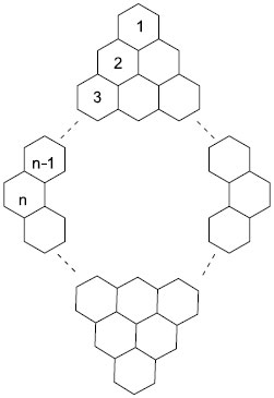 ![]() Figure 3. Graph of rhombic benzenoid system with n hexagons along each boundary