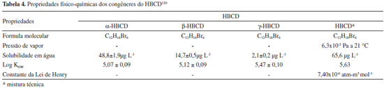 Por ser um retardante de chama do tipo aditivo, ou seja, é apenas adicionado aos polímeros e nao está quimicamente ligado, o HBCD é facilmente liberado dos produtos nos quais é usado e acumula nos diversos compartimentos ambientais. O HBCD foi detectado pela primeira vez em meados da década de 1990 em amostras de ar, esgoto e sedimento na Suécia e, desde entao, tem sido detectado em vários compartimentos ambientais, biota e seres humanos.104-111 Além disso, estudos reportam sua ocorrência tanto em áreas urbanas e industrializadas, como em locais remotos.73,105,107,112,113 Dessa forma, o HBCD é considerado um contaminante com distribuiçao ubíqua. Por se tratar de um composto orgânico nao-volátil, estudos inferem que sao transportados globalmente pelas correntes atmosféricas e oceânicas, adsorvidos as partículas.73 Embora alguns trabalhos reportem a ocorrência do diasteroisômero δ-HCBD, os mais encontrados em matrizes ambientais sao os α-, β-, e γ-HBCD.107-108,110 O padrao de distribuiçao entre eles é similar ao perfil das formulaçoes comerciais, com predomínio do isômero γ.101,105 Entretanto, em diversos trabalhos, principalmente na biota, a contribuiçao do α-HBCD tem aumentado.109,114,115 Um estudo realizado com peixes expostos a HBCD relatou que o α-HBCD possui maiores valores de meia vida e de fator de bioacumulaçao que os demais isômeros, fator que explicaria a maior abundância de α-HBCD em organismos.116 Poucos estudos avaliaram a toxicidade do HBCD, porém há indícios de que apresenta uma elevada toxicidade, sendo capaz de induzir câncer, afetar o funcionamento do sistema hormonal e hepático.117 Também existem indícios de efeitos sobre a fertilidade e neurotoxicidade em mamíferos e de desregulaçao hormonal da tireóide.117 A exposiçao de filhotes de ratos a α-HBCD mostrou um prejuízo no desenvolvimento do cérebro promovido pelo hormônio da tiroide (T3).117 Outro estudo observou alteraçoes no comportamento reprodutivo de falcoes, com diminuiçao no cuidado parental, na temperatura de incubaçao dos ovos durante a nidificaçao e na taxa de cortejo.118 Os diferentes isômeros também apresentam diferentes toxicidades. Du et al.119 reportou inibiçao do crescimento, má-formaçao, atraso na eclosao dos ovos e decréscimo na taxa de sobrevivência de peixes relacionado, tanto com a concentraçao de exposiçao, quanto com o isômero ao qual os organismos foram expostos. Segundo os resultados desse mesmo estudo, o efeito dos isômeros sobre o crescimento dos organismos se daria na seguinte ordem: γ-HBCD>β-HBCD>α-HBCD. Segundo a Comissao Nacional de Segurança Química (CONASQ) e a Associaçao Brasileira da Indústria Química (Abiquim), o HBCD é usado no Brasil nos setores automotivos, de construçao civil, eletrônica e têxtil. Sua concentraçao pode variar de 0,3 a 0,7%, na forma de polistireno expansível, poliestireno extrudado e poliestireno de alto impacto para uso como isolamento térmico na indústria de construçao civil e como aditivo retardante de chama para uso industrial, obedecendo a norma brasileira NBR 11948.22 No entanto, como o HBCD nao possui código de identificaçao especifico (NCM), nao é possível identificar as quantidades importadas e/ou exportadas.23 Devido as suas características de bioacumulaçao, bioamagnificaçao, persistência e potencial para ser transportado a longas distâncias, o HBCD foi incluído, em 2013, no Anexo A da Convençao de Estocolmo. Entretanto, sao aceitas exceçoes específicas para o seu uso em poliestireno expandido e poliestireno extrudido. O Brasil nao possui legislaçao específica para o uso de HBCD, mas como signatário da Convençao de Estocolmo deve atender às decisoes associadas a inclusao no Anexo A, que envolve a eliminaçao do HBCD.