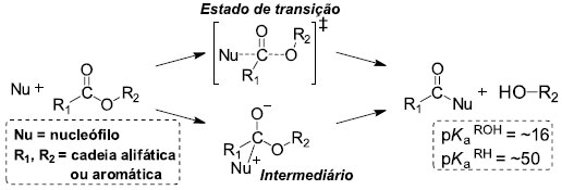 ![]() Esquema 1. Esquema geral para reaçoes de adiçao seguido de eliminaçao em ésteres