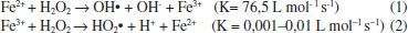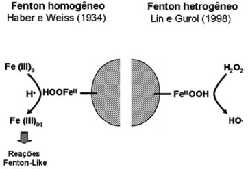 ![]() Figura 3. Representaçao de reaçoes Fenton homogêneas e heterogênea catalisada por formas minerais de ferro