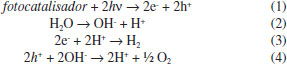 ![]() Figura 2. Princípio básico de geraçao fotocatalítica de H2 através da irradiaçao de semicondutores. Reimpresso da Ref. 21 com permissao. Copyright 2007 American Chemical Society