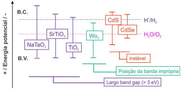 De acordo com Maeda,39 a dificuldade no desenvolvimento de um fotocatalisador adequado pode ser atribuído à falta de materiais conhecidos que satisfaçam a três requisitos: