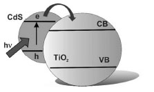 ![]() Figura 6. Esquema de separaçao de cargas utilizando-se a heterojunçao de semicondutores Reimpresso da Ref. 60 com permissao. Copyright Willey-VCH Verlag GmbH & KGaA