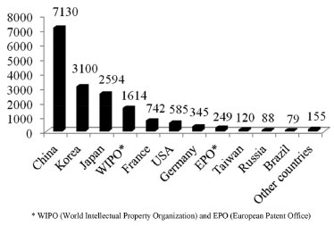 ![]() Figure 3. The main countries with cosmetic patent application for skin treatment using plants