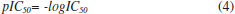 In order to find the correlation between biological activity and the Total Score of indene pyrazole ligands a scatter plot was performed. According to the results of the regression it can be said that there is a good correlation between the biological activity measured in half maximal inhibitory concentration (IC50) and the total score of the coupling motor (Total Score) with a determination coefficient R2 of 0.89, and as is shown in Figure 4 these values increase linearly in proportion. The above analysis was carried out based on two specific variables, while the PLS analysis is designed to build a statistical model that links an independent variable X (in this case, the descriptors of molecular quantum similarity) with a dependent variable Y (biological activity of indene pyrazol ligands). All ligands in Table 1S were optimized as was described above to be used in the calculation of quantum similarity rates, which in turn shows a matrix of similarity index. In the matrix, each column represents the similarity between two ligands. Similarity values for 117 compounds were obtained by using the overlap operator, combined with the Carbo index. In Tables 3S and 4S, the values of the multiple linear regression coefficients which were obtained with the PLS technique are given.