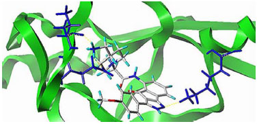 ![]() Figure 3. Ligand interactions of indene pyrazole 062 with the active site of the protein