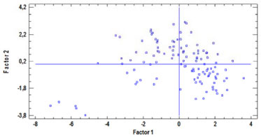 ![]() Figure 5. Graph of factor values for PLS in 2D