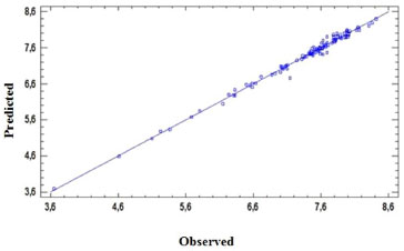 In this study there is a good adjusting model, and is seen that points are aligned along the diagonal line, also the R2 of prediction for 7 components is 89.37, suggesting that a model with seven components is an excellent choice and quite accurately describes the good correlation between the model and molecular interactions.