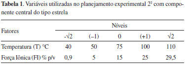 PARTE EXPERIMENTAL Reagentes e soluçoes Carbaril (Sigma-Aldrich® - 99,8%) e pirimicarbe (Sigma-Aldrich® - 98,5%) utilizado como padrao substituto (PS) ou "padrao surrogate", metanol (Sigma-Aldrich® - 99,9%), acetona (Sigma-Aldrich® - 99,9%), hidrogêno fosfato de sódio Na2HPO4 (Vetec® - 99,0%), di-hidrogêno fosfato de sódio KH2PO4 (Vetec® - 98,0%) e cloreto de sódio NaCl (Vetec® - 99,0%) foram usados. A água utilizada foi obtida através de um sistema de purificaçao de água Milli-Q (Millipore®). Soluçoes padrao estoque de carbaril e pirimicarbe (PS) 10 mg L-1 foram preparadas separadamente em metanol e armazenadas a -20 °C. As demais soluçoes padroes foram obtidas por diluiçao da soluçao padrao estoque, com metanol, no momento da análise. A soluçao tampao Sorensen pH 5,5 foi preparada pela mistura de 25 mL de Na2HPO4 0,084 mol L-1 e 475 mL de KH2PO4 0,067 mol L-1 e armazenadas a 4 °C. Condiçoes do CG-EM As análises cromatográficas foram realizadas utilizando um cromatógrafo gasoso (Shimadzu GC-2010), equipado com detector seletivo de massas (Shimadzu GCMS QP-2010), com coluna capilar de sílica fundida DB-5 (20 m x 0,18 mm d.i. x 0,4 µm). As condiçoes experimentais foram: temperatura do injetor, interface e fonte de íons de 260, 270 e 260 °C, respectivamente, gás de arraste hélio com velocidade linear do método determinada experimentalmente, para garantir a melhor eficiência da coluna e injetor no modo splitless. A programaçao de temperatura do forno foi iniciada com 80 °C durante 1 minuto e elevada a 165 °C a 20 °C/min, subsequentemente elevou-se a 225 °C a 10 °C/min, finalmente, a 290 °C a 35 °C/min, sendo a temperatura final mantida por um minuto. O espectrômetro de massas foi operado no modo íon-positivo de impacto de elétrons (IE) a 70 eV. Os fragmentos foram analisados entre 40-450 m/z. Na determinaçao semi-quantitativa MIS (monitoramento de íons selecionados), utilizou-se um único fragmento para cada composto, carbaril (1-naftol) 144 m/z e pirimicarbe 166 m/z, sendo o segundo utilizado como padrao substituto. Condiçoes da MEFS-Headspace e preparo da amostra de plasma Foram avaliados três tipos diferentes de revestimentos comerciais disponíveis (PDMS/DVB - 65 µm, PA - 85 µm e CAR/PDMS - 75 µm) obtidos na Supelco®. Um planejamento experimental do tipo 22 com componente central foi realizado com as variáveis temperatura e força iônica (NaCl). Quando necessário foi utilizado uma expansao do planejamento, para planejamento em estrela com adiçao dos níveis ±√2 (planejamento quadrático), conforme a Tabela 1. As fibras foram condicionadas no injetor do CG com temperatura e tempo recomendado pelo fabricante. Após esse condicionamento as fibras eram submetidas a uma limpeza no injetor do CG a uma temperatura de 260 °C durante 10 min, sempre e antes de qualquer extraçao.