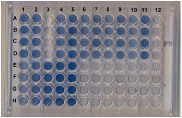 ![]() Figura 1. Imagem obtida com scanner de mesa da microplaca frente a um fundo branco