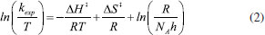 EXPERIMENTAL Preparation and characterization of dACDP and ACDP Di functional cyclic organic peroxides (Figure 1) employed in this work were prepared by methods described in the literature.10,12 dACDP was characterized by Raman and FTIR Spectroscopy and ACDP purity was checked by CG and IR analysis. The mass spectrum of each cyclic diperoxide was obtained by Gas Chromatography coupled to Mass Spectrometry (GC-MS) using a Rtx-5MS capillary column (5 % diphenyl - 95 % dimethyl polysiloxane, 30 m, 0.25 mm I.D., 0.25 µm film thickness), installed in a Thermo Quest Trace 2000 CG model gas chromatograph with helium as carrier gas (1 mL min-1) and injection port at 150 ºC in split mode (split ratio: 1:33, split flow: 33 mL min-1). The detection was carried out with a Finnigan Polaris Ion trap MS with transfer line at 210 °C and ion source at 200 °C. The oven temperature was maintained at 50 °C for 4 min, then programmed at 10 °C min-1 to 200 °C for 5 min. The short time of residence of ACDP and dACDP in the injector at 150 °C made decomposition negligible. Additionally, the absence of decomposition products in the initial solutions for both peroxides was confirmed by GC analysis. Warning - The preparation and handling of cyclic organic peroxides for the objectives of this work are dangerous operations that require standard safety precautions for handling primary explosives. These compounds are sensitive to impact, friction, electric discharge, shock and flame. Organic peroxides in solid state tend to react with metals so nonmetallic spatulas should be used. Glass containers, stainless steel, polyethylene or Teflon are suggested for handling and storage; steel, copper alloys, rubber and lead should not be used. Organic peroxides should not be mixed directly with materials containing heavy metal ions such as iron, cobalt or manganese, since these promote the decomposition of peroxides. In case of fire, an explosion can be anticipated. A foam extinguisher can be used for small fires. CAUTION: Observe the normal safety precautions for handling peroxidic materials.21 It is generally known that peroxides can be detonated by shock. The risks of friction and heat can be controlled by synthesizing only small amounts of ACPD and dACDP, eliminating heat sources, the use of coated boards Teflon spatulas glass and storing small amounts of samples in the refrigerator or as solutions until required.22 Solvents The solvent employed in the reaction was purified with the appropriate techniques23 and its purity was checked by GC analysis. Ethanol used as solvent was distilled from ethylenediaminetetraacetic acid disodium salt to remove traces of metallic ions. Sublimed naphthalene was employed as an internal standard in quantitative GC determinations. Kinetic method Pyrex glass tubes (7 cm long x 6 mm o. d.) half filled with the appropriate cyclic diperoxide in ethanol solution were thoroughly degassed under vacuum at - 196 °C and then sealed with a flame torch with natural gas and oxygen. To perform the runs, the ampoules were submerged in a thermostatic silicone oil bath (PolyScience model 9001) stabilized at a selected temperature (± 0.1 °C) and extracted after predetermined times. The peroxide decomposition reaction was stopped by cooling the ampoules in an ice-water bath (0 °C). The peroxide remaining in the solution was determined by GC (internal standard method) employing a DB-5 capillary column (5% biphenyl - 95% dimethyl polysiloxane, 30 m x 0.32 mm i.d., 0.25 mm film thickness) installed in a Konik-2000C gas chromatograph, with nitrogen as carrier gas and flame ionization detection (250 °C). The injection port was fixed at 150 °C in split mode. The pseudo first order rate constants (kexp) were calculated from the slope of the linear regression obtained by a least mean square analysis of the experimental data by plotting the values of ln (peroxide concentration) vs reaction times. The activation parameters were calculated using the Eyring equation (Eq. 2): ![]() where ΔH is the activation enthalpy, ΔS activation entropy, T is the temperature at which each constant (kexp) was determined, R is the general gas constant, NA is Avogadro's number (6.02 x 1023 molecules mol-1) and h is Planck's constant (6.63 x 1034 J s). The experimental errors correspond to the standard deviations derived from a treatment of the kinetic data by the method of minimum squares.24
