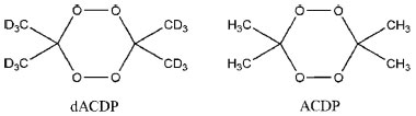 | Thermal decomposition reaction in ethanol solution of deuterated acetone cyclic diperoxide and acetone diperoxide. Secondary inverse isotopic effect |