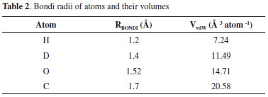 when: NB: bond contribution; RA: number of aromatic ring; RNR: number of non aromatic ring ACDP has a smaller volume than dACDP (135.9 Å 3 molecule -1 and 186.2 Å 3 molecule -1 respectively), and shows the lowest reactivity in ethanol solution at all temperature ranges. ACDP with minor size decomposes at the lowest rates in comparison with dACDP with deuterated substituents, probably because it can be confined in a compact solvent cage where the recyclization reaction is more probable. It is likely that the solvent molecules are able to interact more strongly with a small acetone peroxide molecule generating a close packed system. Thus, this subsequent decomposition of the critical state of the reaction (formation of a biradical in solution, Eq. 1) would be confined to a small 'solvent cage' with strong interaction energy, which would delay species to yield the corresponding reaction products. The increment in masses of the deuterated substituents on C3 and C6 of the tetraoxacyclohexane ring is probably responsible for the displacement of the reaction to the products formation with a higher kexp value for dACDP than for ACDP (Table 1). In previous works, it was demonstrated that the presence of voluminous substituents on the cycle accelerates the reaction; i.e. cyclic diperoxide derived from 3, 3-dimethyl-2-butanone (pinacolone) decomposes in different solvents at higher rates than ACDP.2,8,11 The presence of deuterium in dACDP and the kinetic behavior shown allow postulating a KIE. The relation between kinetic constants that are greater than 1 (kH/kD > 1) is referred to as normal KIE, while those that are less than one is referred to as inverse KIE (kH/kD <1). In this case the latter effect occurs (Table 3).