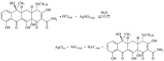 Figura 4. Reaçao química da titulaçao condutométrica do cloridrato de tetraciclina com a soluçao padronizada de AgNO3