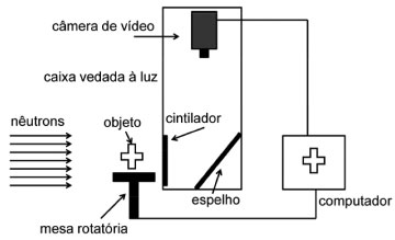 ![]() Figura 2. Diagrama esquemático do equipamento para tomografia com nêutrons