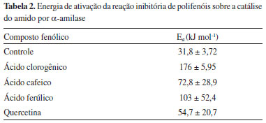 Os valores para a energia de ativaçao (Ea) da reaçao para o sistema enzima-inibidor-substrato estao apresentados na Tabela 2.