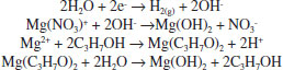 O substrato de vidro recoberto com SnO2 por deposiçao química em fase vapor (CVD) é limpo através de imersao do substrato em diferentes soluçoes (detergente Extranr (5 % vol) em água deionizada (DI), acetona e álcool isopropílico) com o auxílio de um sistema de banho de ultrassom. Cada banho é realizado por 15 minutos a 70 ºC. Por fim, o substrato é seco com jatos de nitrogênio. Após a limpeza, ocorre a eletrodeposiçao de níquel (Ni) nas bordas opostas do substrato para obtençao de um bom contato elétrico, pois o filme de SnO2 é resistivo e a resistência entre dois pontos de contato varia de acordo com a distância entre eles. A faixa de contato baseada no níquel melhora e uniformiza o processo de deposiçao da camada de fósforo. A soluçao para a eletrodeposiçao de Ni contém: 1 litro de água DI; 240 g de sulfato de níquel hexahidratado; 30 g de cloreto de níquel hexahidratado; 30 g de ácido bórico e 2 g de sacarina sódica. O ácido bórico foi adicionado ao banho eletroquímico para controle do pH e a sacarina sódica para proporcionar melhor brilho e uniformidade do Ni.13 O banho é mantido à temperatura ambiente e pH 4.5. A área do substrato de vidro com filme de SnO2 recoberto com níquel ocupa a faixa da lateral do vidro, tendo a regiao depositada a largura entre 3 a 5 cm e o comprimento a dimensao da lateral do vidro. Como contra eletrodo utilizou-se uma placa de níquel. A densidade de corrente da fonte DC é mantida em 3 A dm-2, durante 1 minuto. Obtém-se um depósito de níquel brilhante e bem homogêneo sobre toda a superfície submersa e exposta do substrato de SnO2. A reaçao básica do processo é: ![]() Com as bordas recobertas com níquel inicia-se a deposiçao eletroforética do fósforo. A soluçao utilizada para a deposiçao é baseada em 1 L de álcool isopropílico, 4 g de fósforo ZnS:Ag (Luminophor), 0,26 g de nitrato de magnésio hexa-hidratado, 10 mL de água deionizada e 10 mL de glicerina.14-15 Durante a deposiçao eletroforética o Mg(NO3)+ é o cátion predominante disponível para carregar e formar camada de aderência do fósforo. As reaçoes do processo sao:13,16,17 ![]() A deposiçao é controlada pelo potencial que é mantido em 25 VDC durante 40 minutos. Após a deposiçao da camada de fósforo o substrato é deixado na estufa à 120 ºC por 18 h para completa secagem. A camada de fósforo depositada é de cor branca e apresenta boa uniformidade sobre toda a superfície do filme de SnO2, porem com uma baixa aderência ao substrato de vidro, podendo ser facilmente removida e contaminar a câmara de vácuo do sistema de caracterizaçao. Para solucionar este problema foi depositada uma camada adesiva sobre o fósforo. A camada adesiva foi estabelecida nas indústrias que produziam telas com fósforos e resulta numa melhora significativa na adesao entre as partículas de fósforo e o substrato de vidro.18 Neste processo é empregado o álcool polivinílico (PVA) (2 g L-1) e o dicromato de amônio (ADC) (0.01 - 0.02 g L-1) diluídos em água DI, formando assim o material adesivo, que é depositado sobre o fósforo utilizando um aerógrafo manual.18 Parte da soluçao aquosa penetra entre as partículas de fósforo, revestindo-as com uma película bem fina, permitindo que o adesivo desempenhe um papel de reforço da força adesiva entre as partículas fosforescentes e a camada de óxido. Após a deposiçao, realiza-se a cura do material adesivo por meio da radiaçao ultravioleta (UV)18 (λ = 365 nm) com densidade de potência de 10 mW/cm2 durante 2 minutos. A luz UV provoca uma reaçao fotoquímica induzindo ligaçao cruzada entre as cadeias quebradas de PVA e os íons de Cr. O controle do processo de fabricaçao foi realizado com o auxílio de equipamentos que permitiram observar as características dos materiais em cada procedimento descrito neste trabalho. As espessuras das camadas de SnO2 e Ni foram obtidas com o equipamento DEKTAK modelo 3030. Para o fósforo foi utilizado perfilômetro Zygo modelo NewView 5000. A transmitância do filme de SnO2 foi medida com o espectrofotômetro da PerkinElmer modelo Lambda 900. A resistência de folha dos filmes de SnO2 foi obtida pela técnica de quatro pontas com equipamento da Thin Film Devices Inc modelo FPP-2000. A rugosidade e análises superficiais do fósforo foram obtidas com a microscopia de força atômica (AFM) da Nanosurf modelo EasyScan. O teste de adesao foi realizado baseado na norma ISO 2819 item 2.4 (Peel test) de acordo com o procedimento da fita adesiva descrito no último parágrafo.19 A temperatura foi monitorada com o medidor de infravermelho da Minolta modelo Cyclo 33CF.