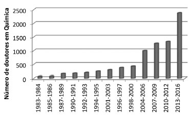 ![]() Figura 1. Número de doutores titulados em Química no Brasil no período de 1983 a 2016. FONTE: Relatórios CAPES9-12