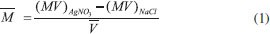 PARTE EXPERIMENTAL Materiais Os reagentes comerciais utilizados foram: NaCl (Vetec, 99%); AgNO3 P.A. (Plat-lab); KSCN (Cinética, 98,5%) e K2CrO4 (Vetec, 99,5%). A amostra de água do mar foi coletada na Barra da Tijuca - Rio de Janeiro. O soro de queijo Minas foi coletado em amostra de queijo de produzido na UFRRJ, campus Seropédica-RJ. O soro fisiológico e a salmoura de azeitona foram obtidos no comércio local de Seropédica-RJ. Todas as amostras foram acondicionadas em frascos de polietileno e guardadas em geladeira até o momento das análises. Preparaçao dos padroes Inicialmente, foram preparadas duas soluçoes de NaCl de concentraçoes 0,05000 mol L-1 e 0,07000 mol L-1 para serem empregadas como padroes primários, mediante a dissoluçao de massa suficiente de NaCl em água destilada e posterior diluiçao a 2000,0 mL, em balao volumétrico. Posteriormente, preparou-se 1000,0 mL de uma soluçao de AgNO3 de concentraçao 0,05 mol L-1 pela dissoluçao de 8,49 g deste reagente em água destilada. Esta soluçao foi padronizada titulando 10,00 mL da soluçao de NaCl 0,05000 mol L-1, empregando 1,0 mL de K2CrO4 5% m/v como soluçao indicadora (método de Mohr). A concentraçao molar obtida para a esta soluçao de AgNO3 foi de 0,04669 mol L-1. A seguir, preparou-se uma soluçao de KSCN de concentraçao 0,05 mol L-1 dissolvendo 9,72 g de KSCN em água destilada o suficiente para 2000,0 mL de soluçao. A determinaçao da concentraçao molar exata (padronizaçao) do KSCN foi feita pelo método de Volhard com o nitrobenzeno (método oficial) e com o óleo de soja (método modificado), utilizando como padrao a soluçao de NaCl 0,05000 mol L-1. Padronizaçao da soluçao de KSCN com os métodos de Volhard oficial e modificado Os métodos de Volhard oficial e o modificado foram comparados mediante as concentraçoes obtidas para a soluçao de KSCN 0,05 mol L-1 após proceder a sua padronizaçao com estes métodos. Na padronizaçao com o método oficial, uma alíquota de 10,00 mL da soluçao padrao de NaCl 0,05000 mol L-1 foi transferida para um frasco erlenmeyer de 250,0 mL, ao qual foram adicionados 25,00 mL da soluçao de AgNO3 0,04669 mol L-1, 5,0 mL de ácido nítrico 6 mol L-1, 1,0 mL de soluçao saturada de alumém férrico e 2,0 mL de nitrobenzeno. O erlenmeyer com esta mistura foi agitado para que o precipitado de AgCl ficasse impregnado com o nitrobenzeno. Posteriormente, esta soluçao foi titulada com a soluçao de KSCN 0,05 mol L-1, sob agitaçao, até o aparecimento de tom avermelhado, devido à formaçao de complexo entre o tiocianato e o Fe3+. O mesmo procedimento foi realizado para a padronizaçao da soluçao de KSCN pelo método modificado, porém empregando 2,0 mL de óleo de soja como substituto para o nitrobenzeno. Vale ressaltar que, como o óleo de soja é menos denso que o nitrobenzeno, é conveniente agitar vigorosamente a soluçao contendo o AgCl neste método para que o precipitado fique completamente impregnado no óleo. Foram realizadas 10 réplicas para cada método. O cálculo da concentraçao molar exata da soluçao de KSCN pelos métodos de Volhard oficial e modificado foi realizado a partir da equaçao 1 ![]() em que: Com o intuito de estimar as concentraçoes de cloreto nas soluçoes tituladas que podem ser quantificadas pelos métodos de Volhard oficial e modificado, foram realizados dois experimentos: a titulaçao de alíquotas de 5,00, 10,00 e 15,00 mL da soluçao padrao de NaCl 0,07000 mol L-1 e a titulaçao de 10,00 mL deste padrao de NaCl diluído nas proporçoes padrao:soluçao: 1:1; 1:2; 1:4; 1:5; 1:7; 1:10; 1:20; 1:33; 1:50; 1:67; e 1:100. Estes experimentos foram realizados em triplicata. Determinaçao de cloreto em amostras reais Os métodos de Volhard oficial e modificado foram empregados para a determinaçao de cloreto em amostras de água do mar, soro fisiológico, soro de queijo Minas e de salmoura de azeitona. Para tal, foram analisadas alíquotas de 10,00 mL de soluçao-amostra diluídas na proporçao 1:20 (amostra:soluçao). Foram realizadas 7 réplicas para cada análise.