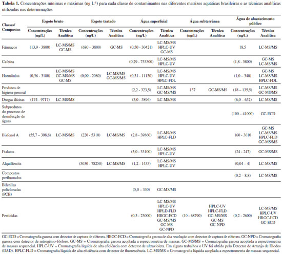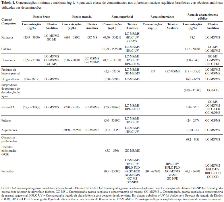| Contaminantes emergentes em matrizes aquáticas do brasil: cenário atual e aspectos analíticos, ecotoxicológicos e regulatórios Emerging contaminants in aquatic matrices from brazil: current scenario and analytical, ecotoxicological and legislational aspects |