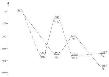 ![]() Figure 4. Schematic map of energy levels in triplet state (relative energies in kJ mol-1)