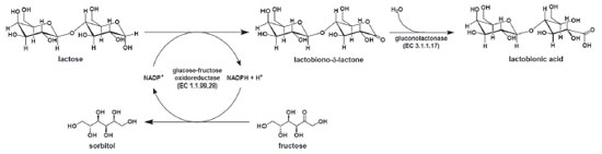 Figure 1. Enzymatic ping-pong mechanism of lactose conversion to lactobionic acid mediated by GFOR/GL system