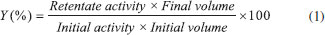 For collagenase enzyme, the highest yield was obtained with the use of free cells, corroborating the enzymatic activity presented above. The immobilization in alginate and alginate-sponge systems did not exhibit satisfactory results, possibly due to problems with the distribution of the enzyme in the culture medium, considering that these are immobilization by imprisonment systems. Thus, the ultrafiltration membrane has been proven to be a viable concentration method, enabling partial purification as well as being simple and quick to perform.