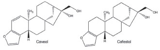 ![]() Figura 1. Estruturas químicas do caveol e cafestol