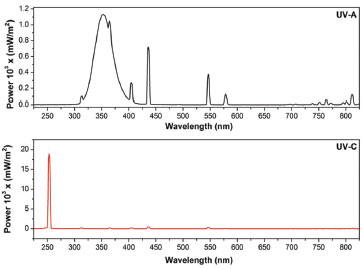 ![]() Figure 5. Emission spectra of UV-A and UV-C lamps