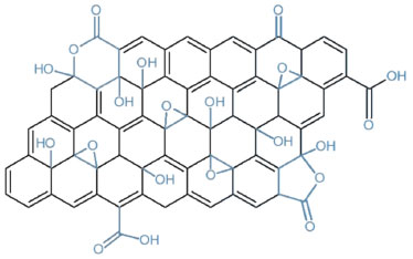 ![]() Figura 2. Modelo estrutural de óxidos de grafite (elaborada pelos autores com base em Rourke et al.)14