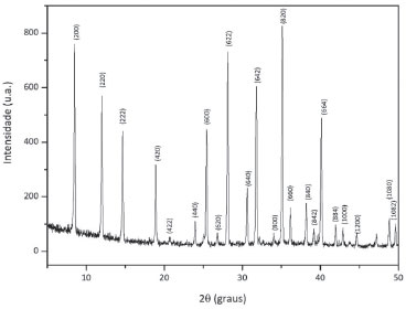 ![]() Figura 2. Difratograma de raios-X da zeólita 4A sintetizada